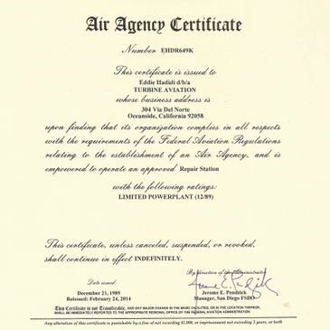 FAA Repair Station EHDR649K
